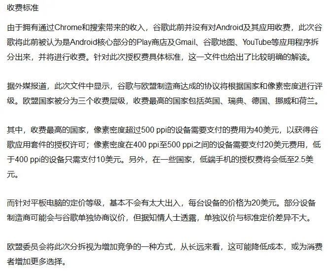 同时呢,Android也制定了收费标准