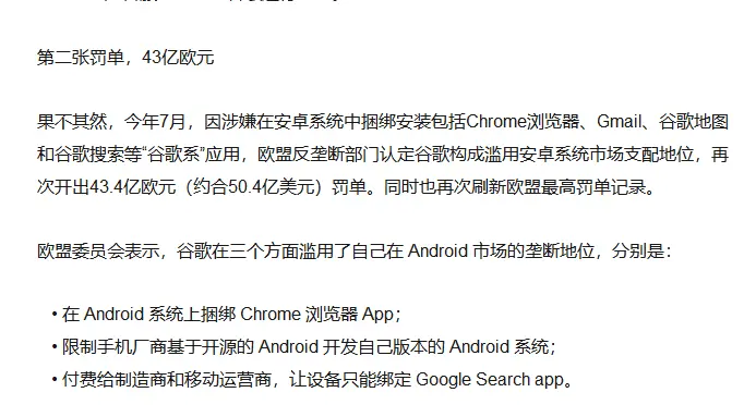 欧盟两张罚单,谷歌白干半年