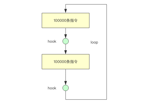 下面我就要开始揭秘 kill 的原理了,lua 脚本引擎功能太强大了,它提供了各式各样的钩子函数,它允许在内部虚拟机执行指令时运行钩子代码。比如每执行 N 条指令执行一次某个钩子函数,Redis 正是使用了这个钩子函数。