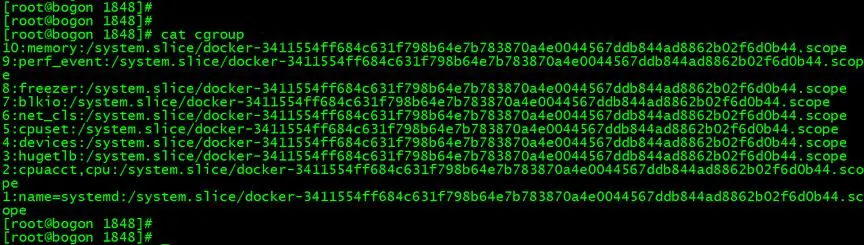 该容器内进程在宿主机上的进程号为1848。接下来进入/proc/1848/cgroup下看看该进程的cgroup挂载情况
