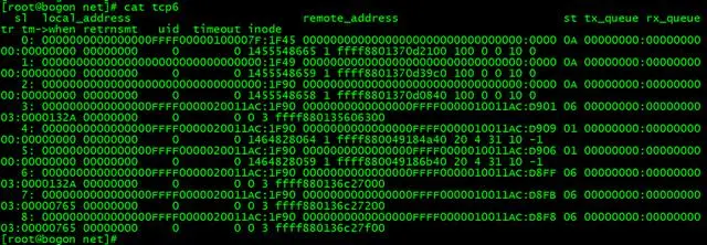 /proc/$pid/net/tcp(tcp6,udp,udp6)就对端口号和连接数做了相应的历史记录。这些文件格式都类似,以tcp6举例