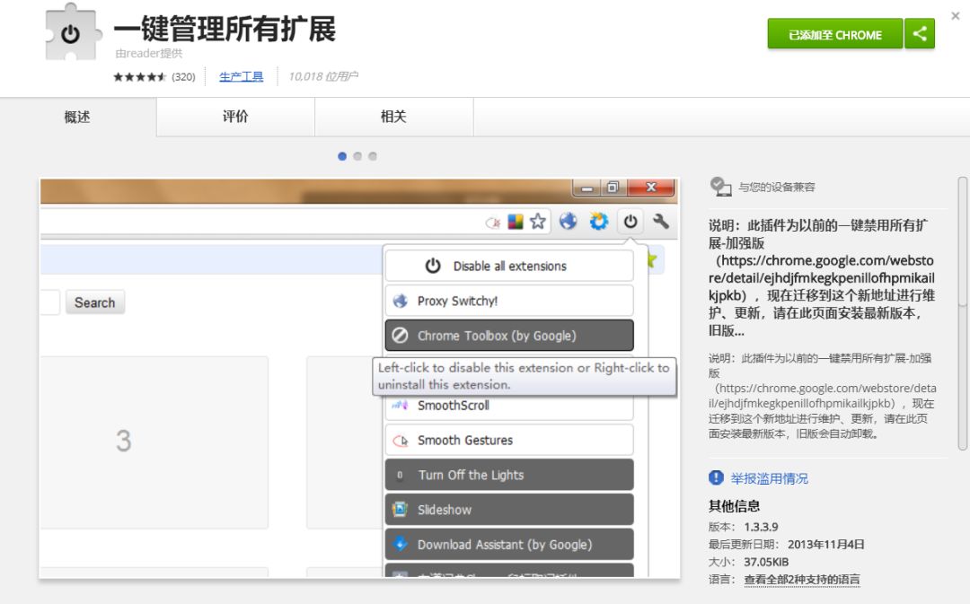 装了这么多插件,没有一个好的插件管理怎么行,「插件管理」正是为你而来,一键禁用所有插件,快速卸载禁用插件,简直不能更方便。有个问题就是:怎么使用「插件管理」禁用自己呢?![]()