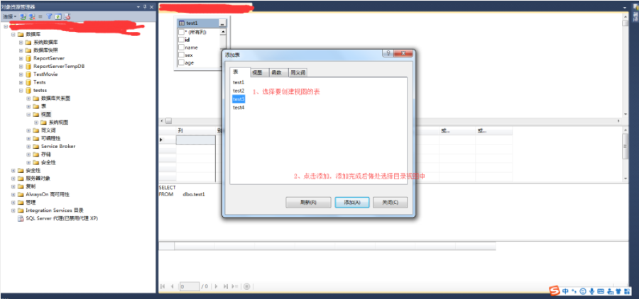 使用SSMS数据库管理工具创建视图