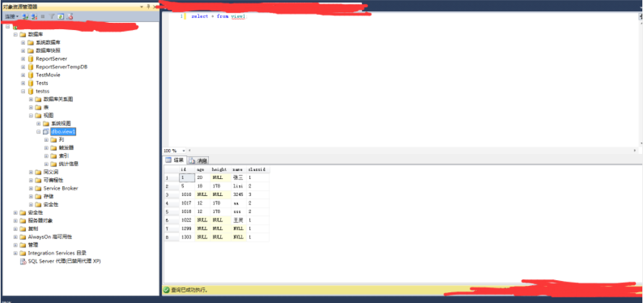 select top(10000) a.id,a.age,a.height,a.name,b.id as classid from dbo.test1 as a inner join dbo.test3 as b on a.classid=b.id where a.classid<=100 order by a.id --要求对该视图执行的所有数据修改语句都必须符合 select_statement 中所设置的条件。 通过视图修改行时,WITH CHECK OPTION 可确保提交修改后,仍可通过视图看到数据。 --with check option;