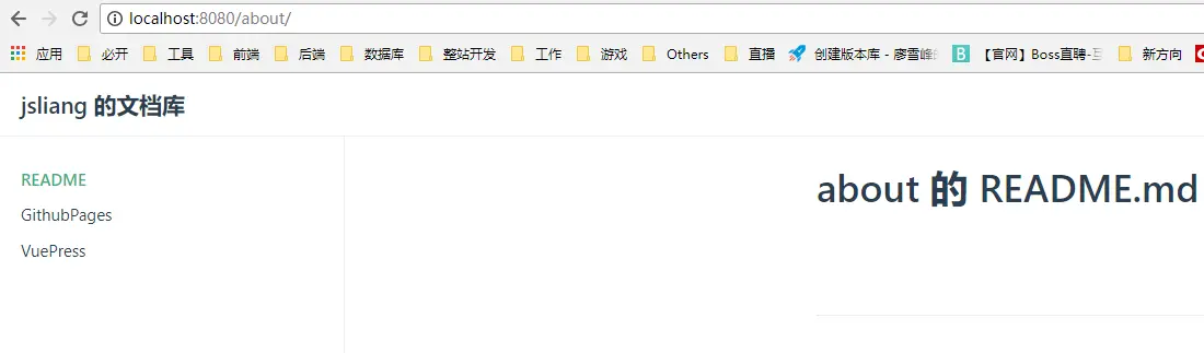 OK,由于我们重新修改了首页(即 docs/README.md),所以我们重新重启下,Ctrl+C -> y -> npm run dev,重新打开 http://localhost:8080:
