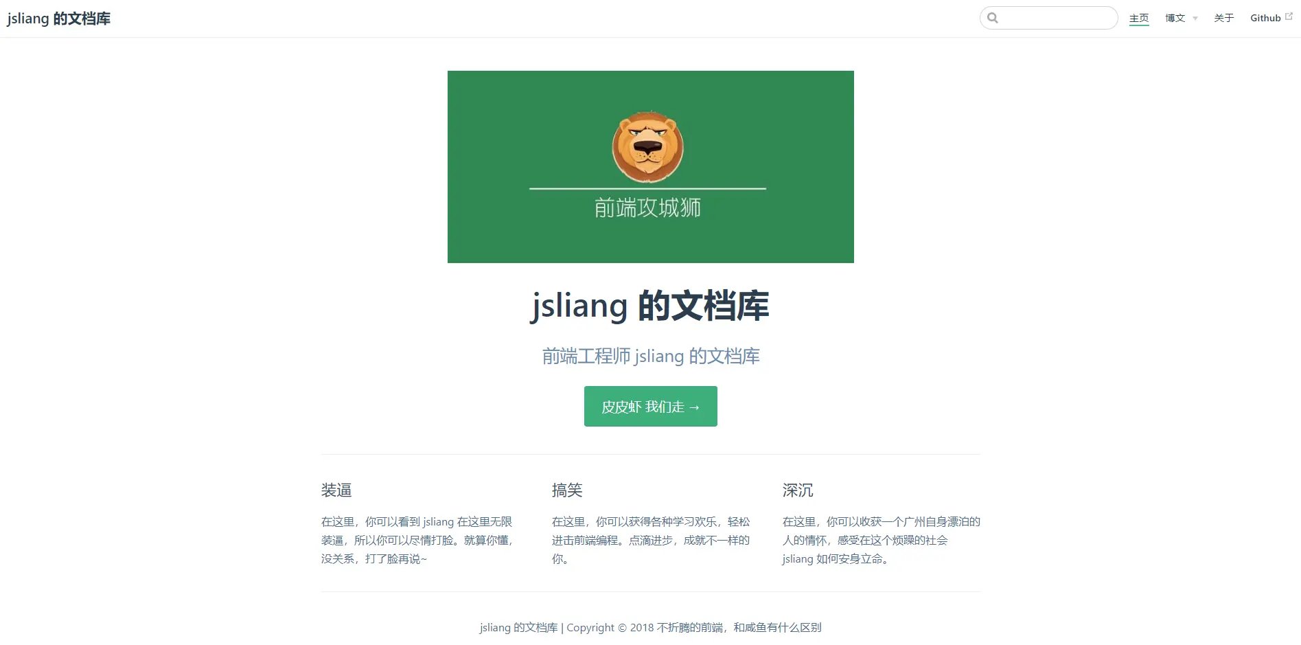 但是,如果这只是一篇关于如何入门 GitHub Pages 和 VuePress 的文档,我会觉得毫无意义。所以,jsliang 希望这篇文章能够整合网上的 GitHub Pages 和 VuePress 资料,并且比它们丰富一丢丢,加入 jsliang 使用心得,让小伙伴们看完无需翻阅大量文章也能快速做好自己的个人文档库/博客。那样,我就心满意足了。因为……