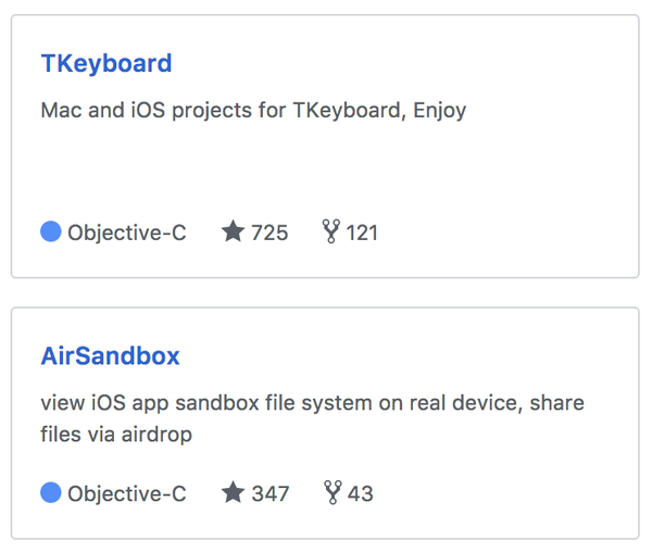 我在开源上投入的精力一向有限,给自己定的目标是每年收集一千颗星星,毕竟主要精力还是要放在赚钱养老婆孩子上。今年幸不辱命靠 TKeyboard 和 AirSandbox 刚好过及格线,晒下成绩: