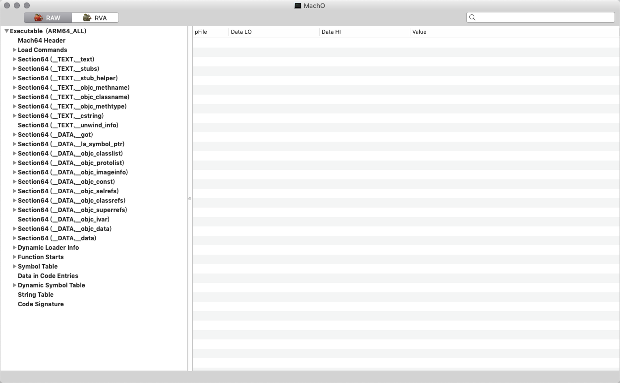 我们实际用工具去看下Mach-O,新建一个iOS工程,什么代码都不加,直接编译一下,然后使用MachOView查看 因为本文关注的是