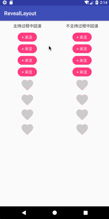 如一个关注取消关注控件FollowView,只需要继承RevealLayout,然后复写以下3个方法: