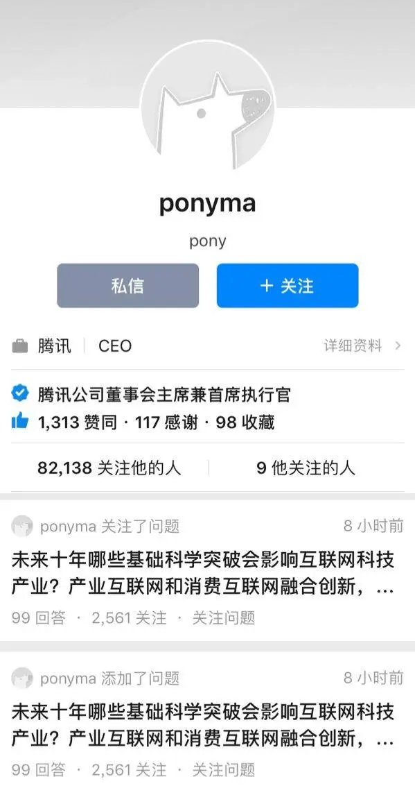 即使认证之后,你也不能肯定提问的那个人就是马化腾。即使是马化腾提问,他的恐怕也不是心存焦虑通过知乎来抚慰自己。