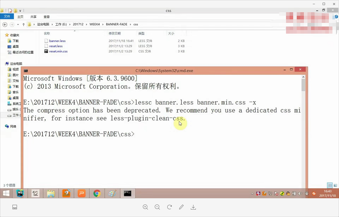 编译并压缩less(需要先npm安装less)