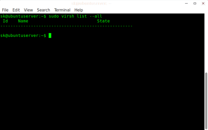 $ sudo virsh list --all