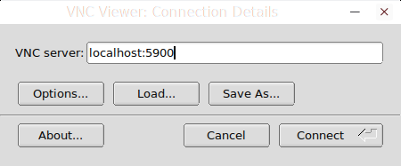 在 VNC 服务器框中输入 localhost:5900,然后点击 “Connect” 按钮。