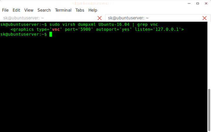 $ sudo virsh dumpxml Ubuntu-16.04 | grep vnc