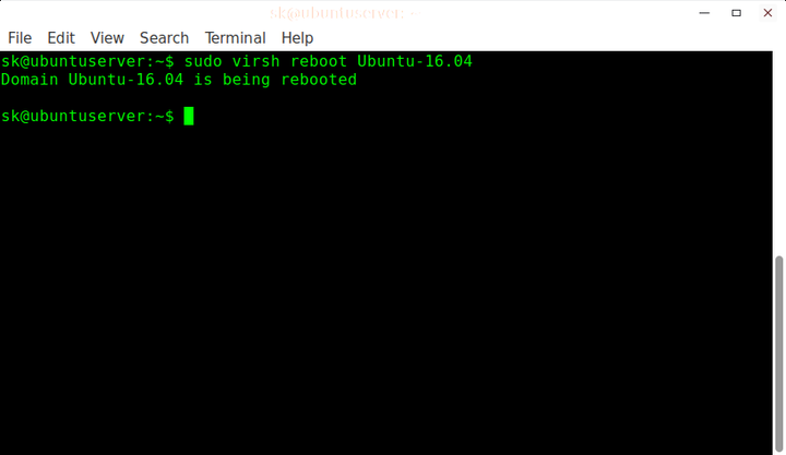 $ sudo virsh start Ubuntu-16.04