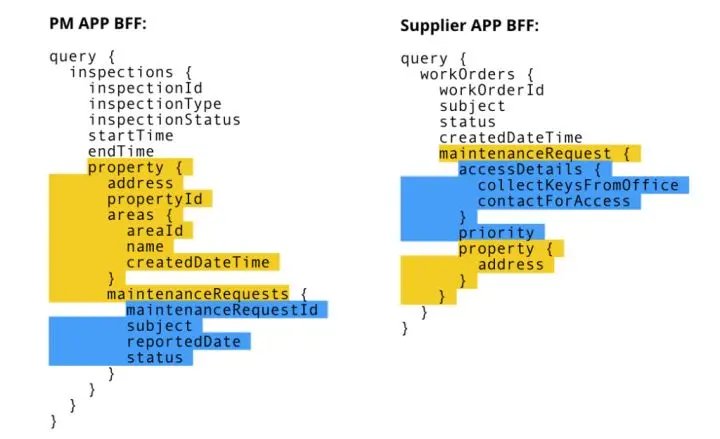 从业务上来看,PM App(使用者:物业经理)关注的是property,物业经理管理着一批房屋,所以需要知道所有房屋概况,对于每个房屋需要知道有没有对应的维修申请。所以 PM App BFF 在定义数据结构是,maintemamceRequests 是 property 的子属性。