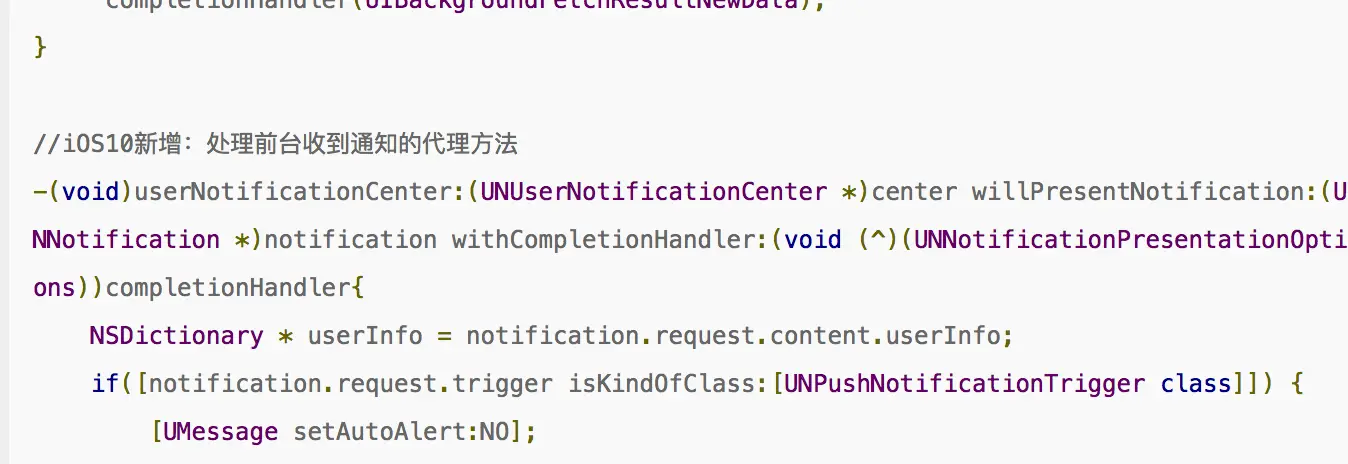 如图所示啊,下面这个方法是iOS10以下才走,但是上面那个方法什么都没说,我用的测试版本是iOS10以上,确实两个方法都不走。