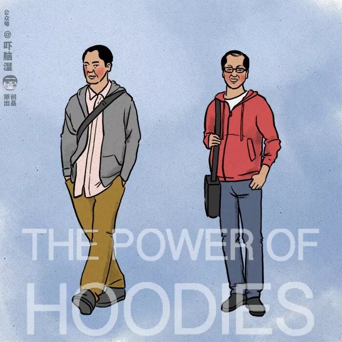 但两件连帽衫的叠加混搭的穿法,可能只有互联网公司才有。