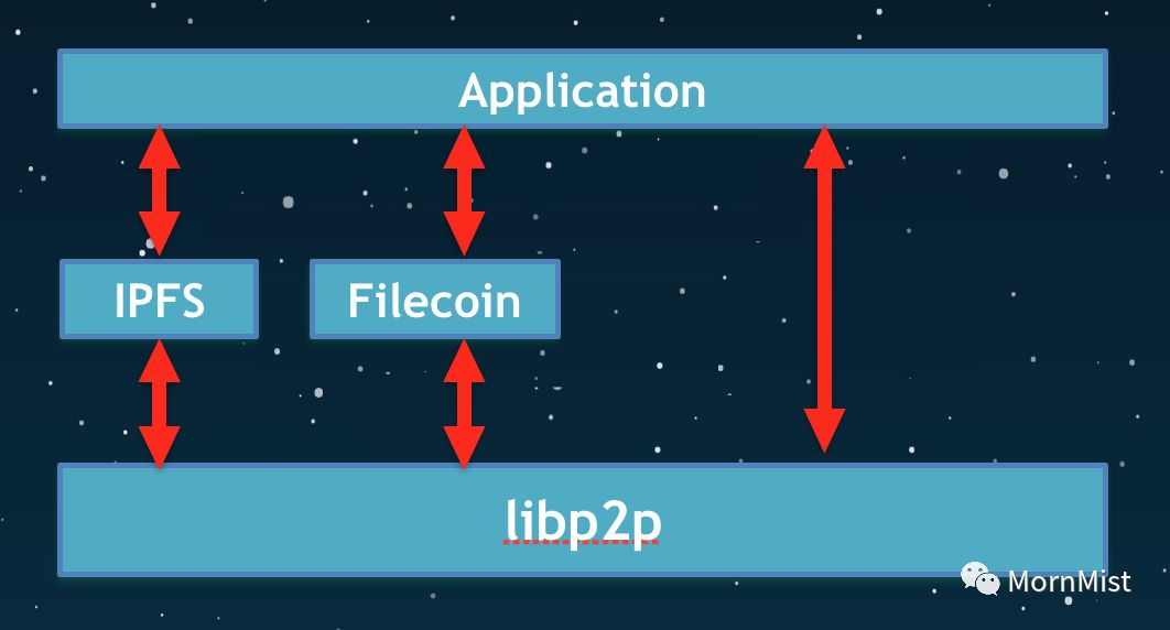libp2p是IPFS与Filecoin的网络层,分为交换层、路由层和网络层。如下图所示,libp2p不仅是IPFS与Filecoin的基础设施,还是未来p2p应用、区块链和物联网的基础设施。