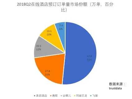 而后起之秀美团酒旅,以咄咄逼人之势,实现单日百万间夜量,如下图: