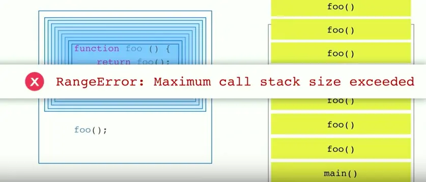 当运行程序时,我们首先查找main函数——我们所有其他的函数都是在main函数中执行。如上面GIF图所示,运行首先开始于 console.log(bar(6)),因此其被push到栈中。下一帧是函数bar和他的参数,而bar调用函数foo,因此foo也被push到栈中。