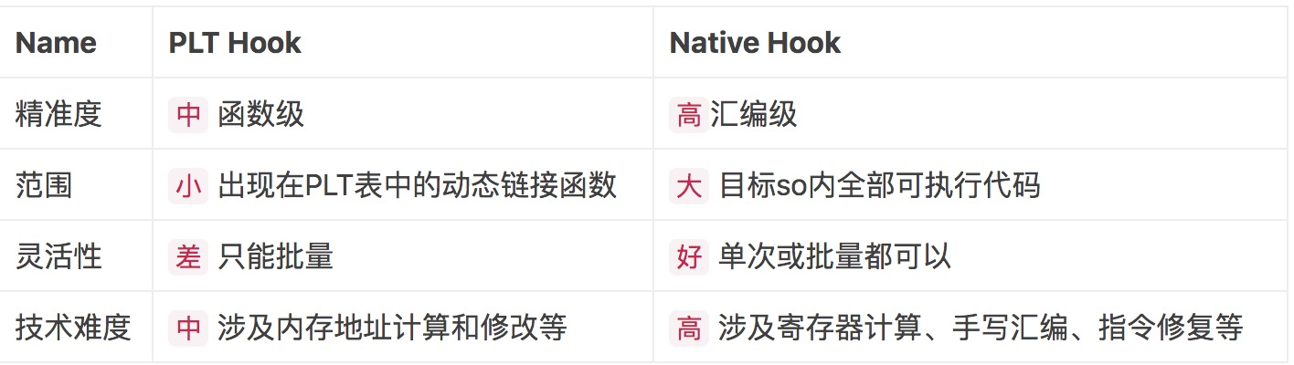 了解PLT Hook的原理后,可以进一步分析出这种技术的特点: