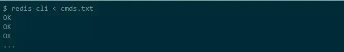 上面的指令使用了 Unix 管道将 cat 指令的标准输出连接到 redis-cli 的标准输入。其实还可以直接使用输入重定向来批量执行指令。