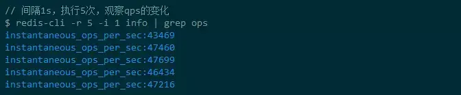 redis-cli 还支持重复执行指令多次,每条指令执行之间设置一个间隔时间,如此便可以观察某条指令的输出内容随时间变化。
