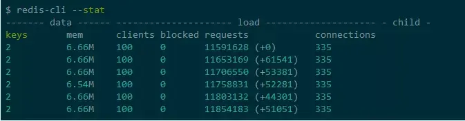 我们可以使用 --stat 参数来实时监控服务器的状态,间隔 1s 实时输出一次。