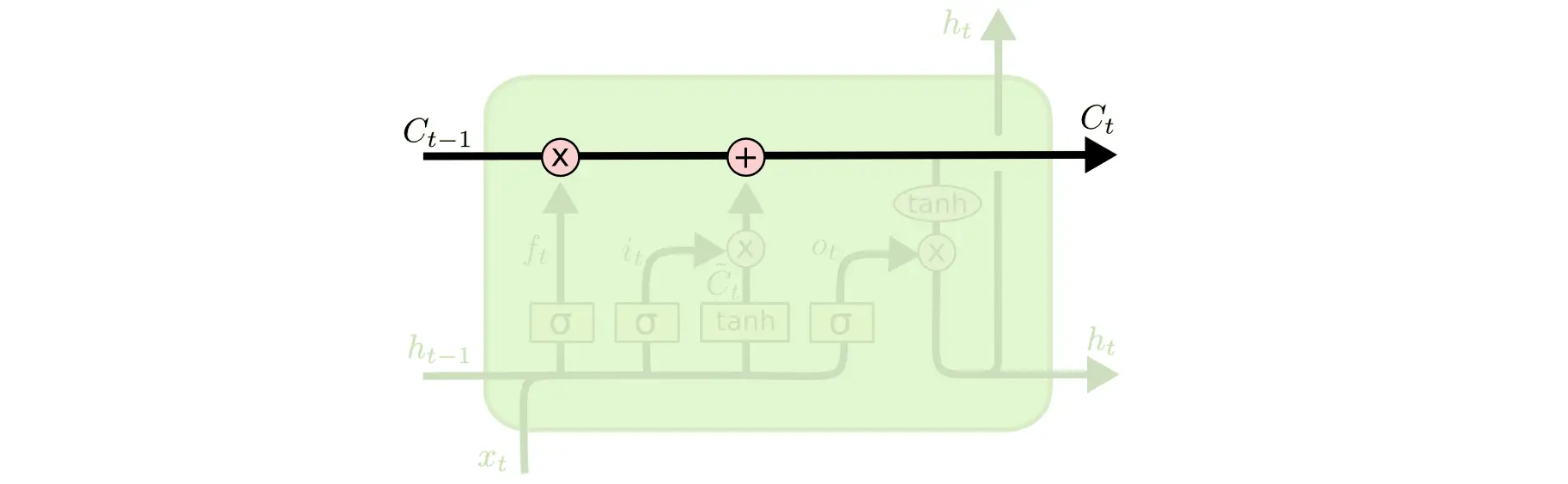 LSTM的关键是单元格状态,横跨图表顶部的水平行。