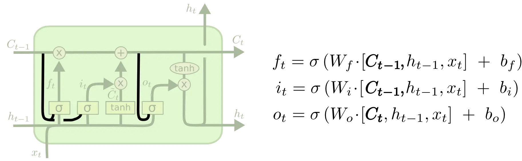 我所描述的是一个非常正常的LSTM。但并非所有的LSTMs都与上述相同。事实上,几乎每一篇涉及LSTM的论文都使用了略微不同的版本。差别不大,但值得一提。