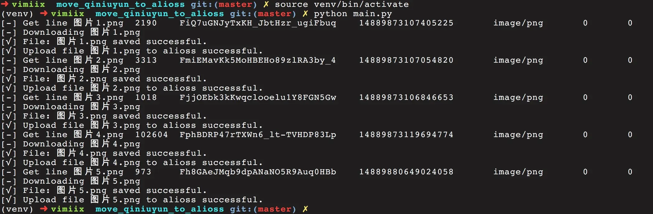 于是,今天就花了点时间写了一个自动化迁移工具(move_qiniuyun_to_alioss),并开源到 GitHub 了,没什么复杂的操作,就是把图片 down 下来,本地备份一份数据,然后再通过阿里云的 API 接口直接上传到指定的 bucket。