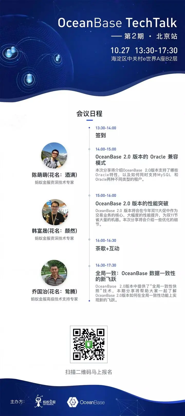 10月27日(本周六),OceanBase TechTalk 第二期线下技术交流活动将在北京启动。