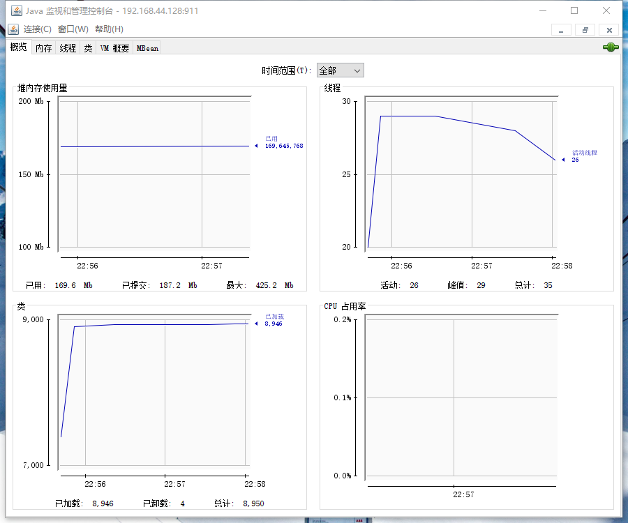 5.打开Jconsole,进行远程连接,输入IP和端口即可