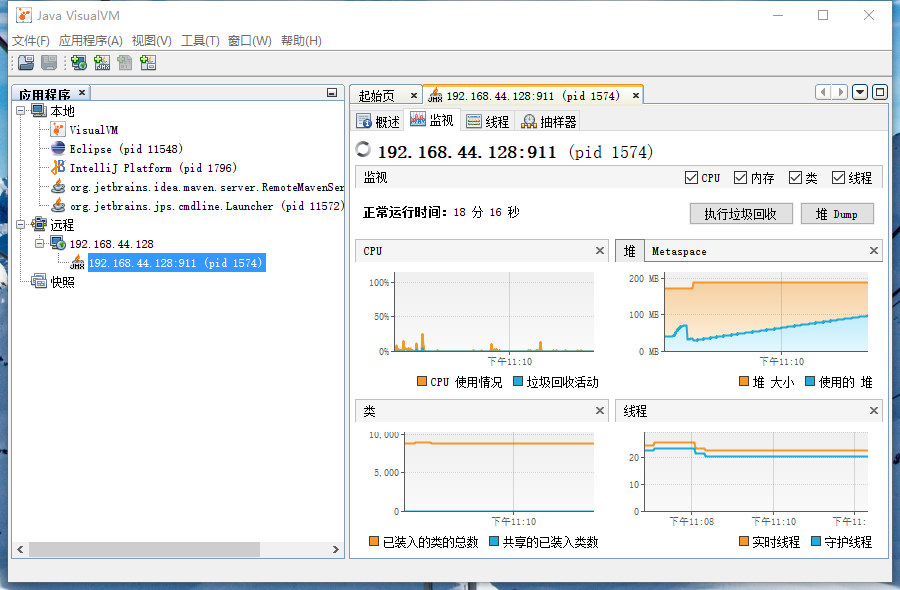然后在本机JvisualVm输入IP:PORT,即可进行远程连接:如下图所示:
