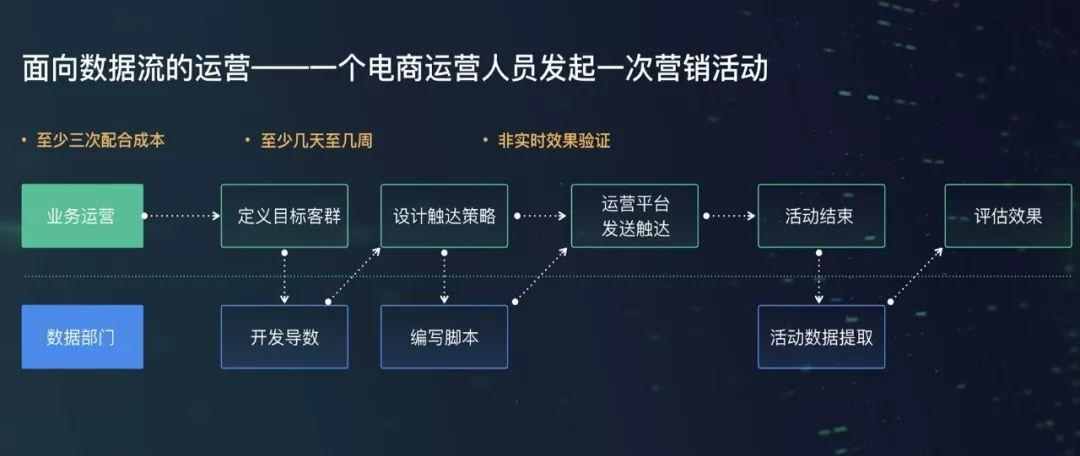 关于组织改造,公司中的各个部门,包括市场、产品、运营、研发等人员,都要基于数据流程对自己的定位进行改造。