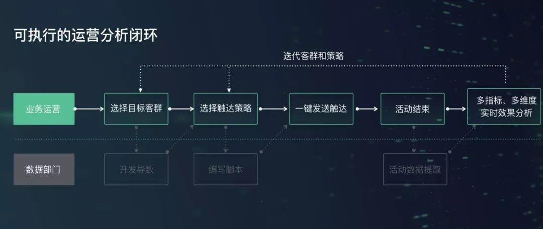 构建可执行的运营分析闭环,从时效性和投入产出比,以及运营人员自身的提升都有很大的价值。如下图当有了数据根基,我们通过给用户打标签,实现用户分群,构建用户画像,并根据其制定运营策略,实施运营方案,实现用户触达。再通过效果分析,进行优化迭代,最终让每一次运营都变成一次学习。