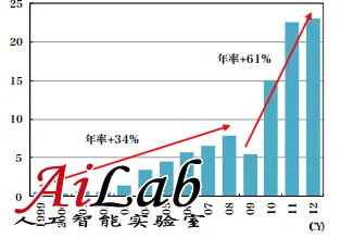 瑞穗银行产业调查部的报告则显示,中国对产业机器人的采购需求实际上维持着更为快速的增长:1999年至2008年年均增长达到34%,2009年受到金融危机影响有所下降,但2010年之后出现更为惊人的增长,2009年至2012年的增长率达到61%。