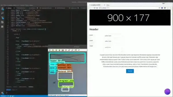 而屏幕上,显示着识别的过程,同时正在生成代码和UI界面预览。