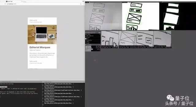 整个过程中,电脑借助摄像头拍摄到产品经理正在白板上绘制的原型草稿,一边就即时“画”出了UI,生成了代码,展示着成品网页。