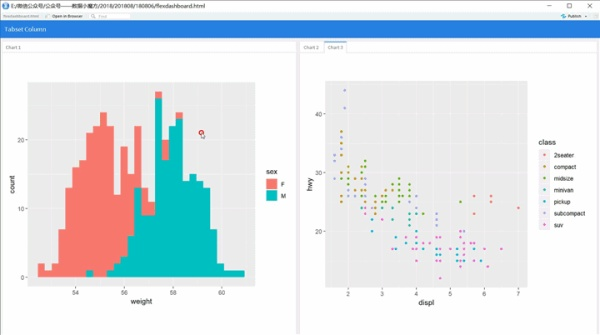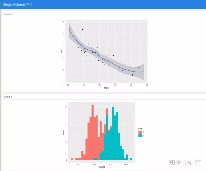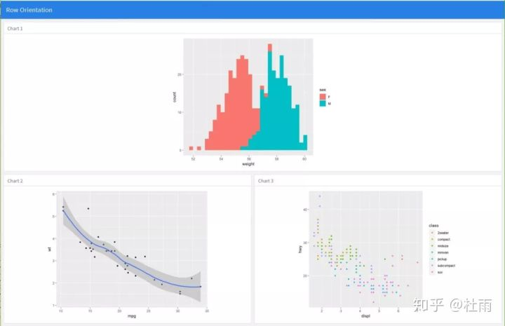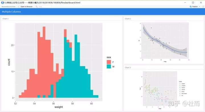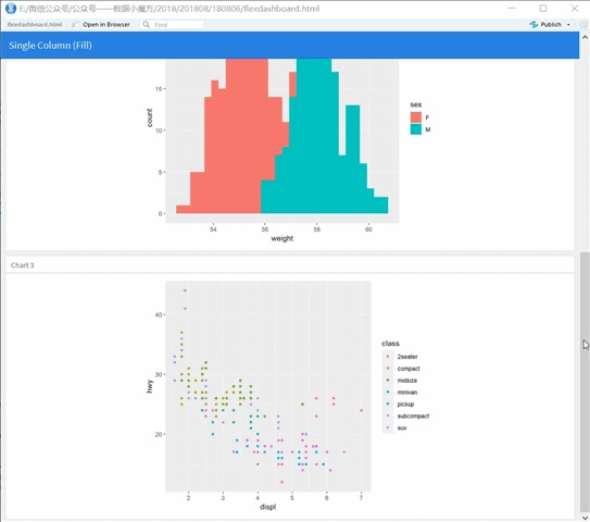 当然flexdashboard可以支持多列布局,只需要在代码中声明列参数即可,而且可以自定义各列的列宽。