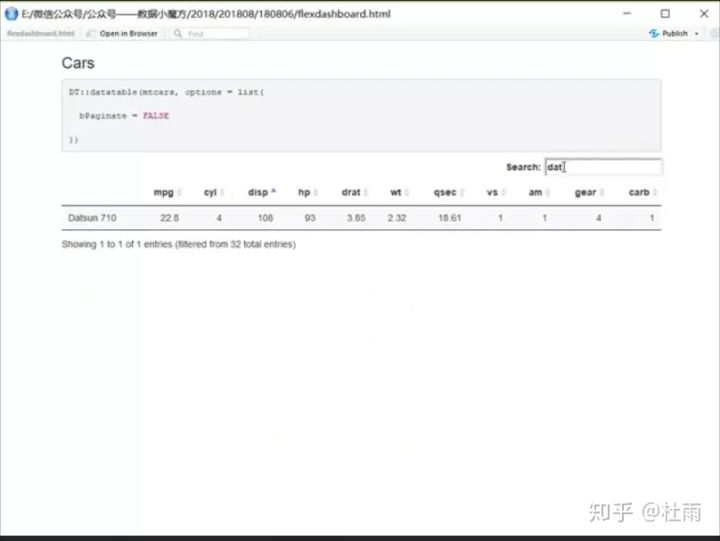 DT包通过renderDataTable函数封装,可以实现通过全局控件交互来动态更新呈现出的图表,DT::datatable自身的交互功能的使用场景是很受限的。
