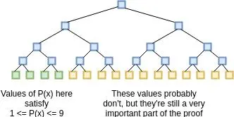 证明这个问题的“传统” 方法是,遍历所有的 1,000,000 点,逐个对值进行校验来进行验证。但是,我们想要知道是否我们能够构造一个证明,它可以在小于 1,000,000 步的情况下得到验证。简单地随机对 P 进行求值校验无法做到这一点;总是有可能出现一个恶意证明者,他会想出一个 P,这个 P 满足在 999,999 位置内的限制,但是不满足最后一个,那么随机采样仅有的几个值,将会总是错过那个正确的值。那么,我们可以做什么呢?