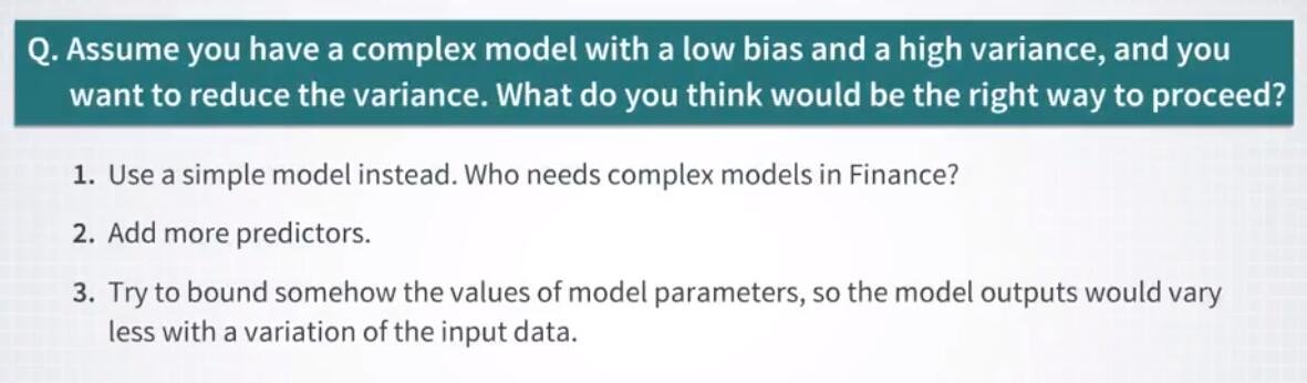 然而,另一方面,添加更多特征通常会增加方差。反之亦然,你可以使用简单的线性模型进行回归,但特征数量较少。那么你的模型将具有较小的方差,但它会有很大的偏差。