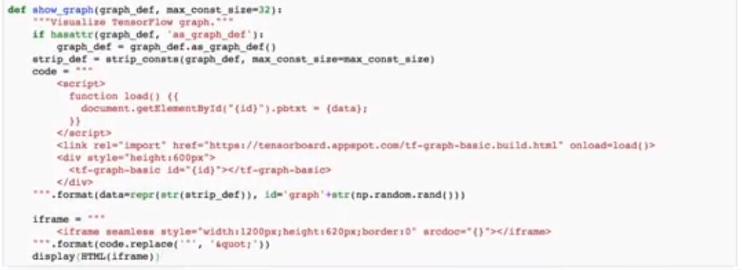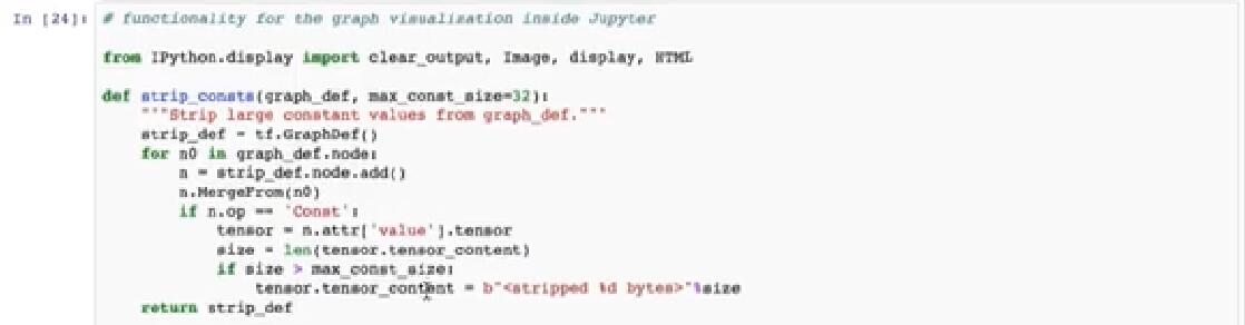 最后,我想向你展示如何可视化 TensorFlow 图。有两种方法可以做到。在 Jupyter 笔记本中或使用 TensorBoard。在这里,我将向你展示第一种方法。这个矩阵来源是在这个单元格中给出的,这是我从 Garren 的书中借来的代码。所以,让我们运行它,然后移动到下一个单元格,在那里我们显示一个图。让我们来吧。我们为代码输出了 TensorFlow 图。