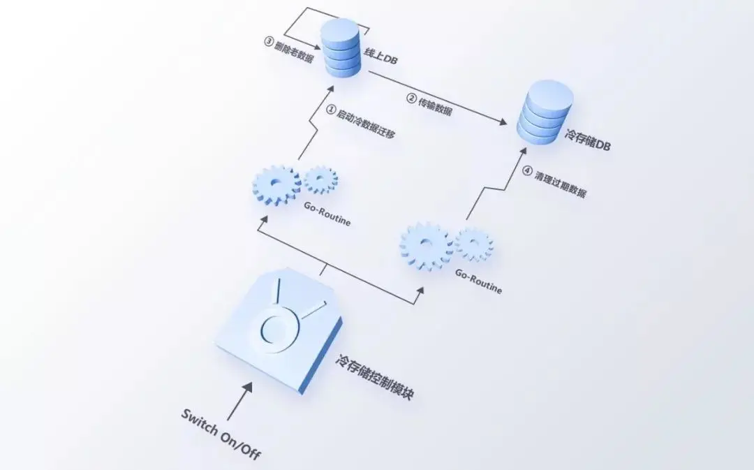 在开始2.0架构设计与改造前,我们尝试使用冷存储方法,通过迁移数据的方式来减轻系统压力(架构设计如图2)。由于数据表数据量太大,并发多个数据迁移任务需要大量时间,清理数据的过程同样会触发重新构建索引,方案的上线并没有根本性地解决问题。