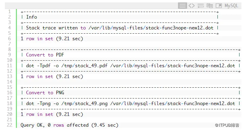 要弄清楚函数调用过程发生了什么,我们可以使用performance_schema / sys模式创建一个带有 ps_trace_thread() procedure的跟踪。