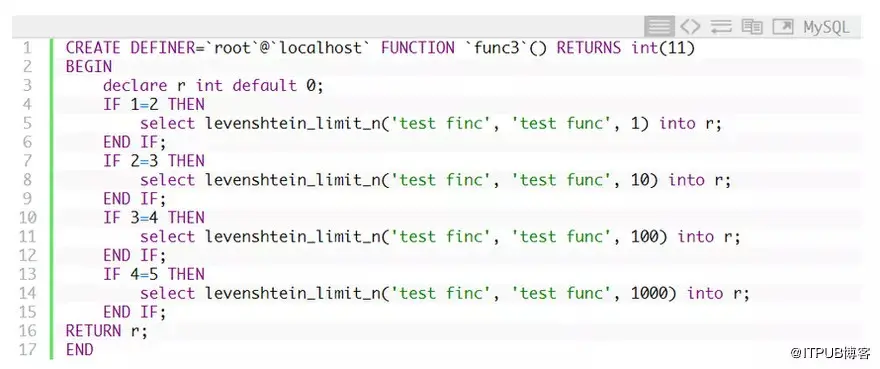 该函数调用另一个函数 levenshtein_limit_n(计算levenshtein距离)。但是,由于IF 1=2条件永远不会成立,因此这段代码永远不会被执行,这与函数1的返回结果类似。