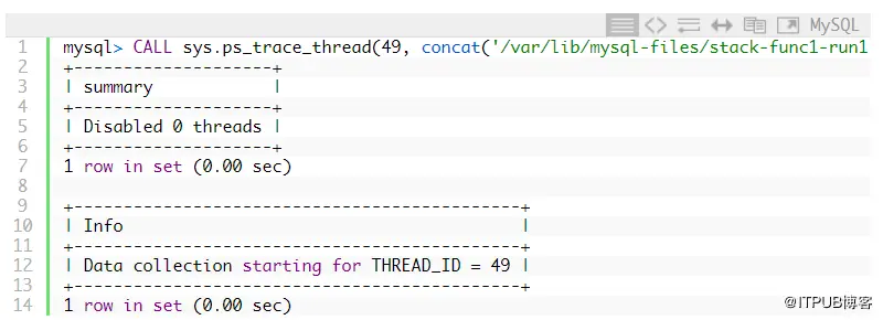 在另一个连接中通过thread_id = 49运行ps_trace_thread: