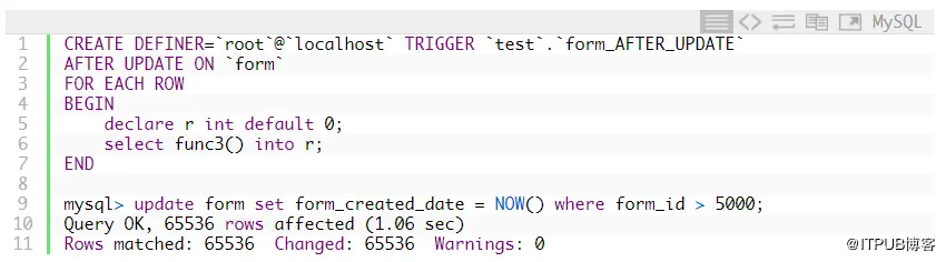 如果,我们从触发器内的函数func3运行代码(而不是调用函数)将加快更新速度: